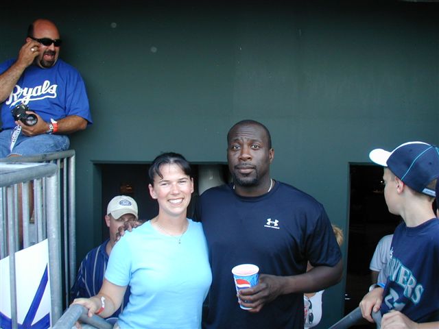 A couple of Mariners fans that came all the way from Seattle to cheer for their team. |
