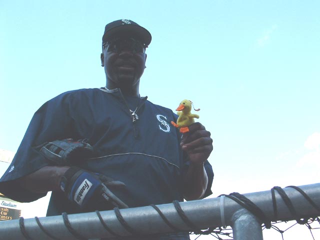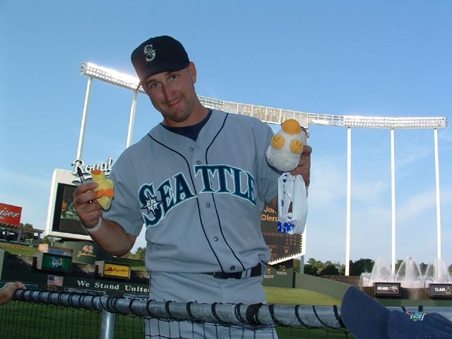 Mark McLemore stop by to have his picture taken with the ducks. |
